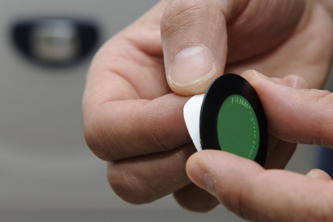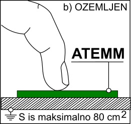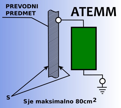 ATEMM® ploščico nalepimo na ozemljen prevodni predmet - površino. Oseba se z dotikom na ATEMM® ploščico razelektri in je ob dotiku ozemljenega predmeta razelektrena.Tako postane dotik s kovinsko površino neboleč in nečuteč.