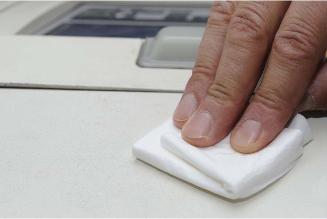 1. Očisti površino 2. Odlepi spodnjo nalepko 3. Pritisni na površino 4. Uporabi ploščico